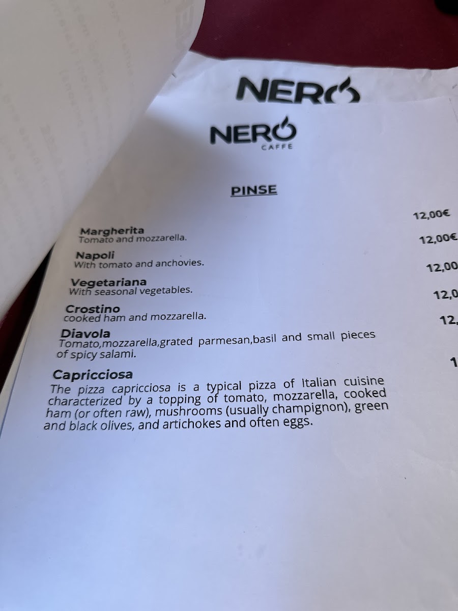 The café’s freshly made bruschetta and perfectly crisp fries provide ideal light bites, complemented by an excellent selection of beers and thoughtfully brewed cappuccinos. The chilled cabinet boasts tempting pastries and deli options that appeal to locals and tourists alike. Friendly and attentive service, especially from waiter Johnny, helps create a warm atmosphere that welcomes families and solo visitors. Whether you're looking for a quick coffee, a leisurely meal, or a casual drink, Bar Nero Caffé strikes a balance between quality, affordability, and genuine Italian charm.